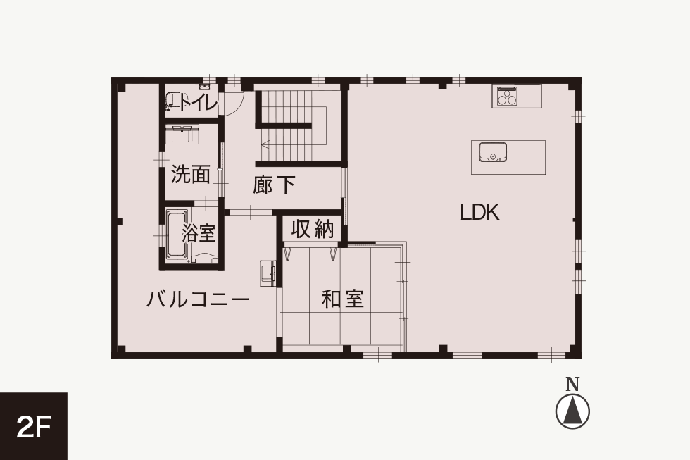【2階LDK】人通りが多く、外からの視線が気になるので、2階をLDKに。こども達も走り回れ、のびのびとした暮らしを。